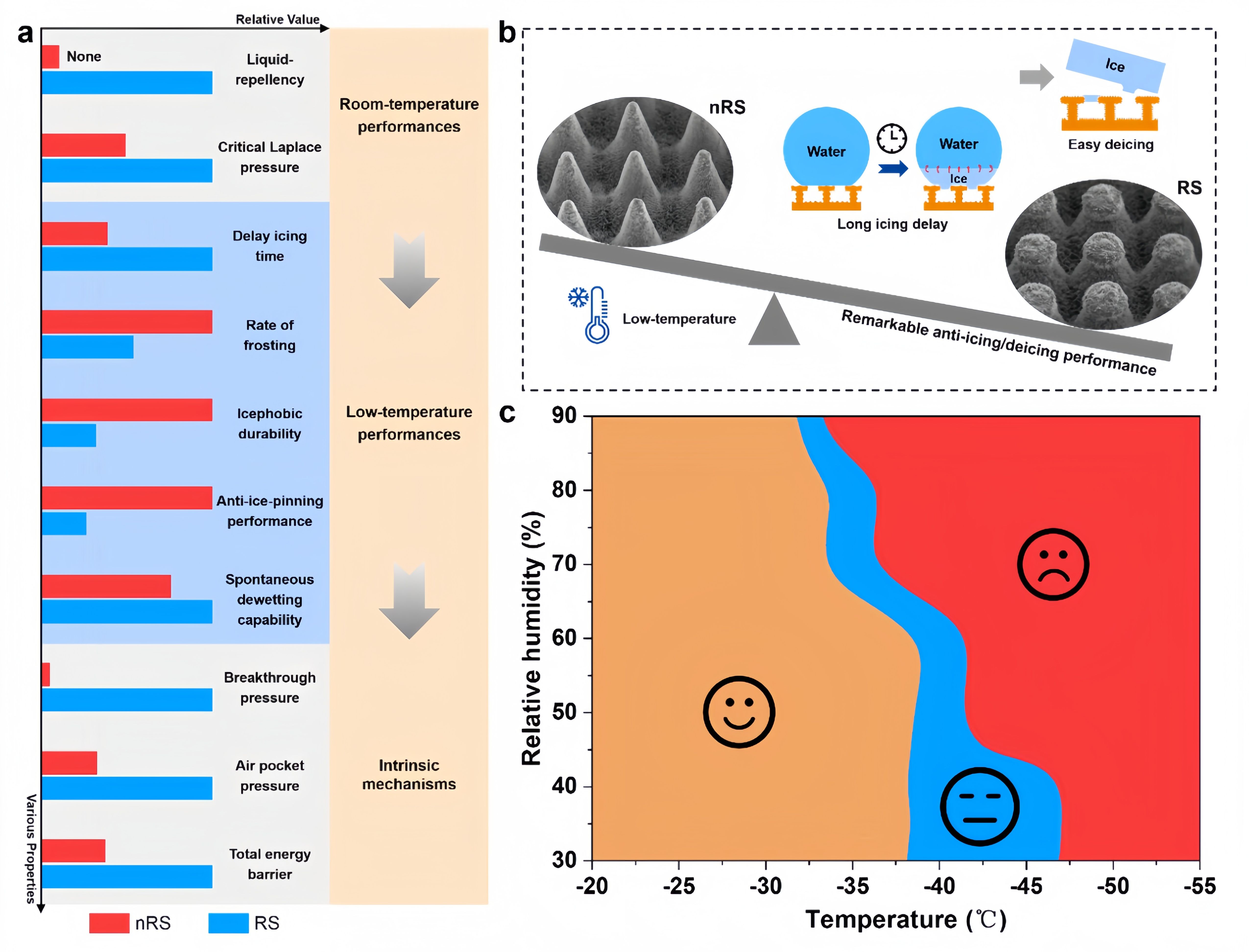 图3.清华材料学院所设计制备的倒角结构的全面性能评估及维持有效防冰性能的临界条件