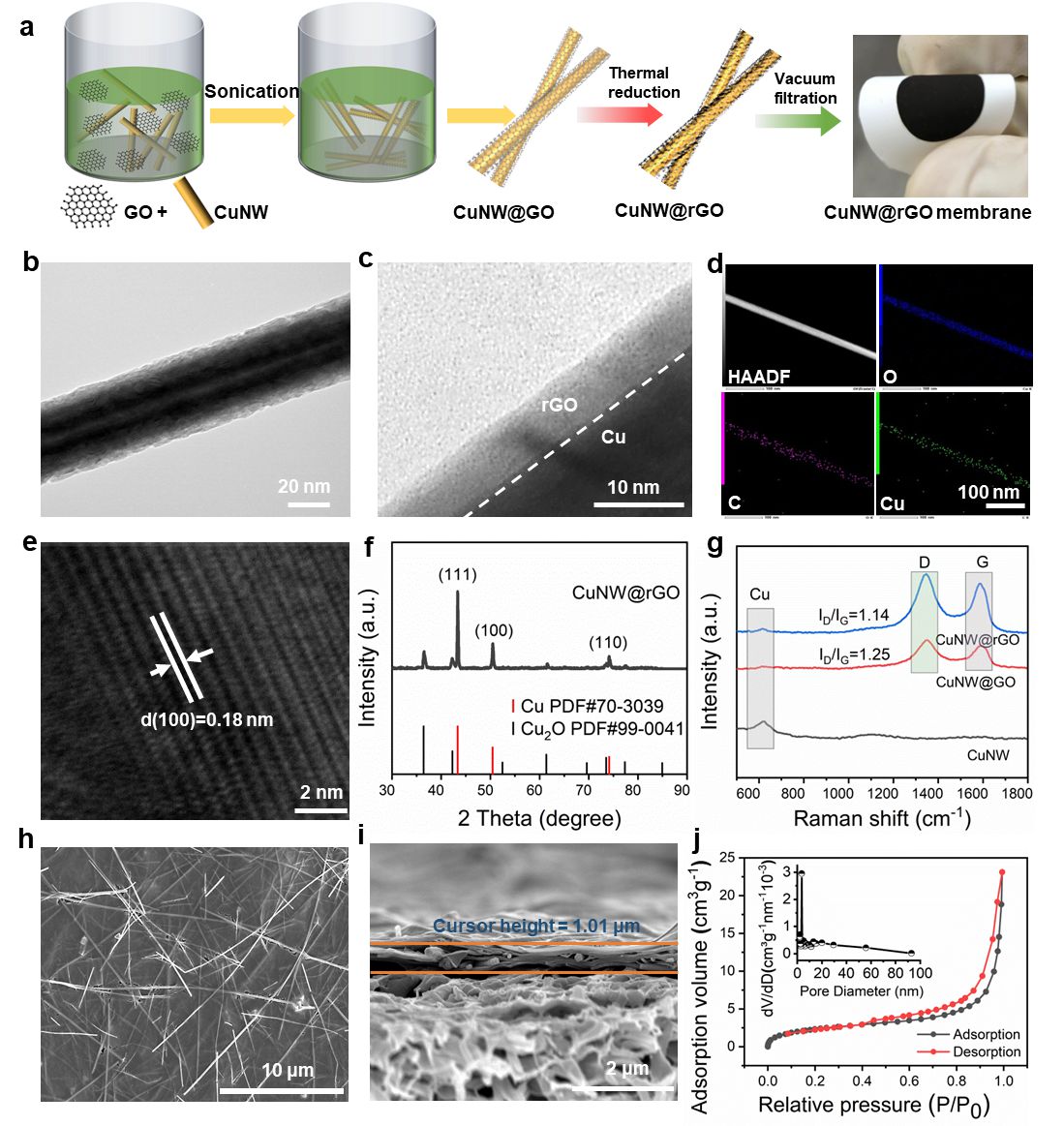 图2.铠甲结构CuNW@rGO膜的结构表征