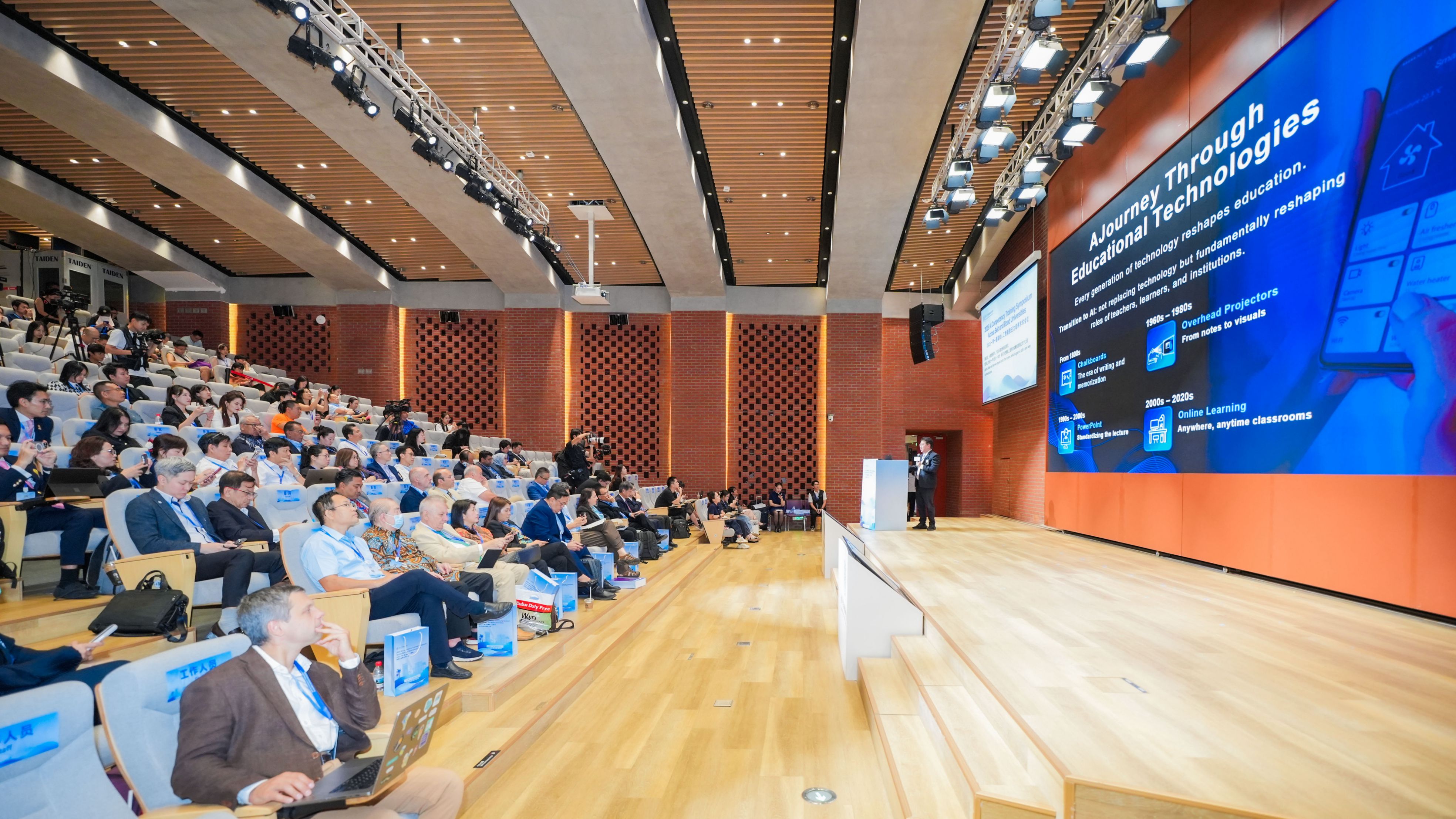 杨斌以“智能时代的全球高等教育愿景:心博在线登录入口的战略与思考”为题作主旨报告,系统阐述了心博在线登录入口在人工智能时代的战略布局与实践探索,强调要从“适应”转向“展望”和“塑造”,塑造开放包容、有所担当、面向未来的高等教育新格局。