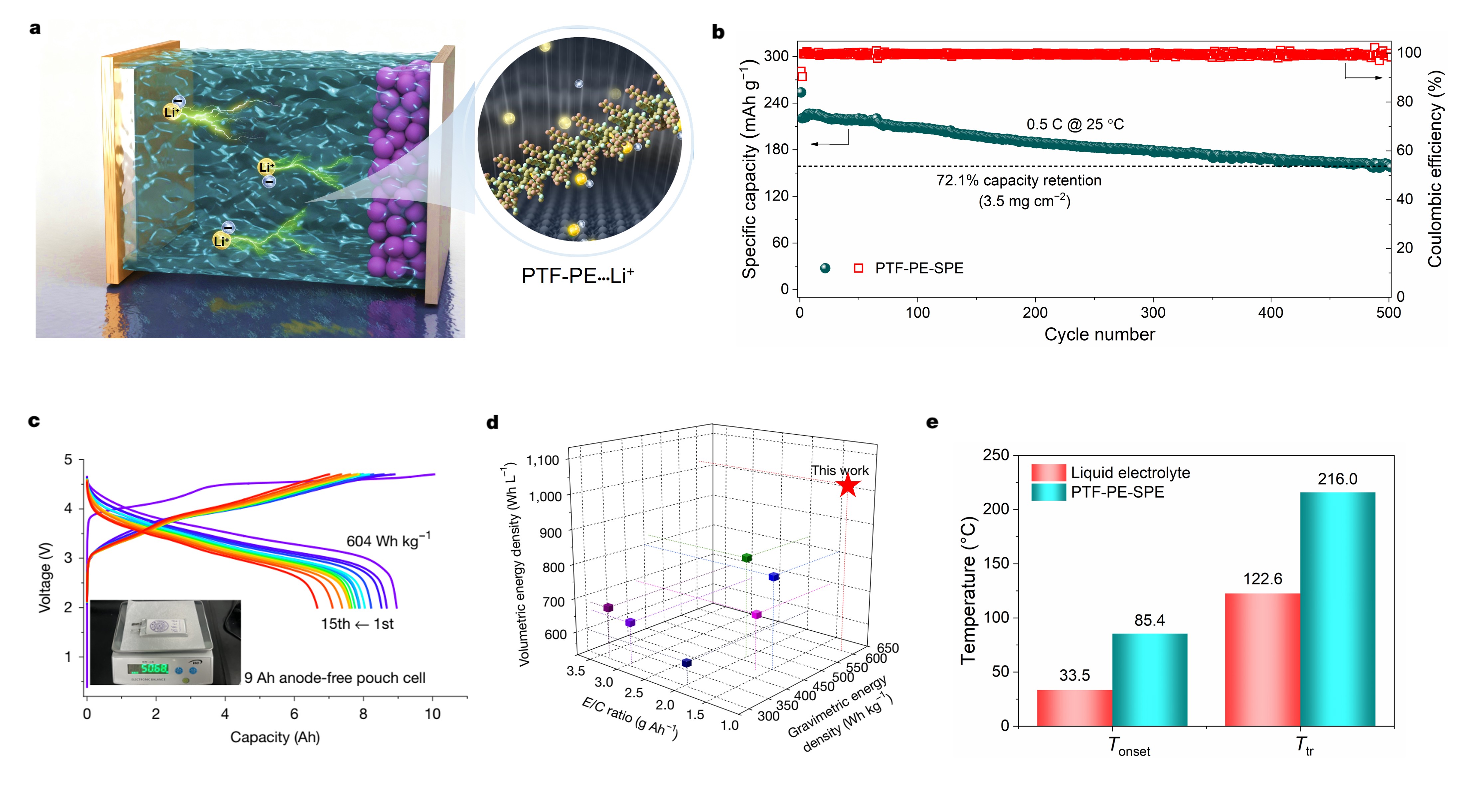 研究成果以“调控聚合物电解质溶剂化结构实现600 Wh kg−1锂电池”(Tailoring polymer electrolyte solvation for 600 Wh kg−1 lithium batteries)为题,于9月24日在线发表于《自然》(Nature)。