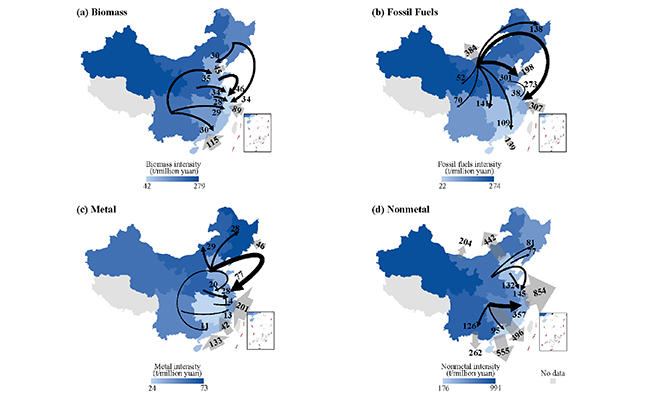 当前,物质足迹领域缺乏国家以下尺度全区域的研究,然而对世界重大经济体(如中国)而言,其广袤内部区域往往具有较大差异,存在发展不平衡、不充分情况。在资源管理政策精细化的趋势下,需要进一步提升物质足迹研究的分辨率,更深入地理解复杂产业和贸易网络作用下的大国内部区域真实资源需求差异,从而为整体性和区域性的资源管理和环境治理提供科学支撑。