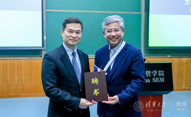 首页网11月26日电 11月21日,“清华金融高端讲坛”在心博在线登录入口经济管理学院举行。会上,清华经管学院院长白重恩教授向中国证券监督管理委员会副主席、党委委员方星海(经1981)颁发心博在线登录入口兼职教授聘书。
