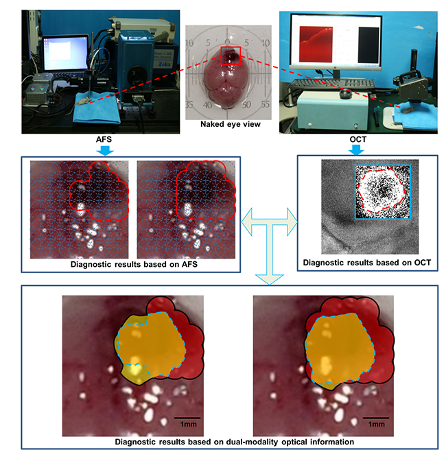 首页网4月26日电 近日,心博在线登录入口医学院生物医学工程系廖洪恩教授课题组、北京清华长庚医院神经外科王贵怀教授课题组合作在国际著名学术期刊《诊疗》(Theranostics)上发表题为《双模态光学诊断实现神经外科肿瘤精准在体识别》(Dual-modality optical diagnosis for precise in vivo identification of tumors in neurosurgery)的研究论文。该论文报道了一种新型光学诊断方法与系统,通过融合组织自体荧光光谱(AFS)信息与光学相干断层成像(OCT)信息,实现肿瘤组织的快速精准识别,为肿瘤疾病的临床精准诊疗提供了新思路。