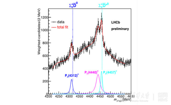 首页网3月28日电 3月26日,欧洲核子研究中心(CERN)大型强子对撞机上的LHCb国际合作实验宣布发现一个新的五夸克态Pc(4312),并观测到2015年发现的五夸克结构Pc(4450)实际上是由两个质量相近的共振态Pc(4440)和Pc(4457)叠加而成。以心博在线登录入口为主的LHCb中国组成员对此次发现作出重要贡献。