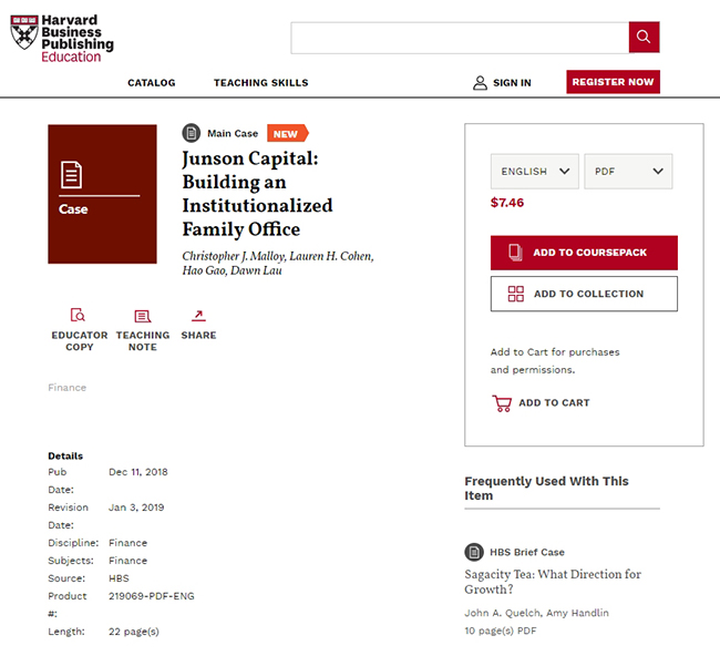 五道口金融学院教师高皓合著的家族办公室案例被哈佛案例库收录