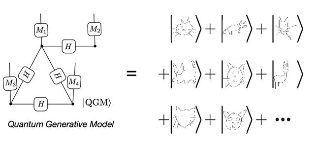 段路明、郜勋等首次提出了一种基于优化多体量子纠缠态的量子生成模型,并证明了该量子生成模型在学习能力与预测能力方面都存在指数加速。量子生成模型中,经典图中表示概率的参数由正实数扩大至复数域,这种新的量子图模型所需的参数个数相比于经典图模型(包括贝叶斯网络、马尔科夫随机场、玻尔兹曼机、深度信念网络等)有指数量级的减少,这对于生成模型来说,在空间和时间的效率上都是巨大的优势。段路明研究组提出了能实际有效利用这种新型图模型的启发式量子机器学习算法。此算法将生成模型的推断和训练问题,转化成量子多体哈密顿量的基态制备问题,并由此可以证明量子算法的指数加速。