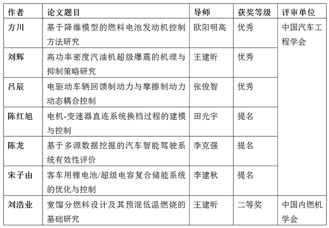中国汽车工程学会优秀博士学位论文奖今年是首届评选,行业内影响力相当于之前的全国百篇优秀博士学位论文评选。此次评选在全国范围内共计评选出10篇优秀博士学位论文奖,10篇优秀论文提名奖。