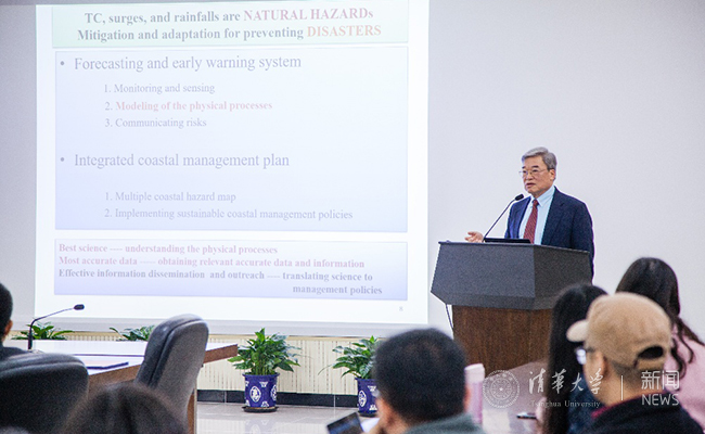 聘任仪式由水利系系主任杨大文教授主持,三十余位在校师生、浙江大学和国家海洋环境预报中心的学术同行出席。聘任仪式后,刘立方作题为“双台风记:‘天鸽’和‘山竹’台风对澳门的影响研究”(A Tale of Two Typhoons in Macau)的学术报告。