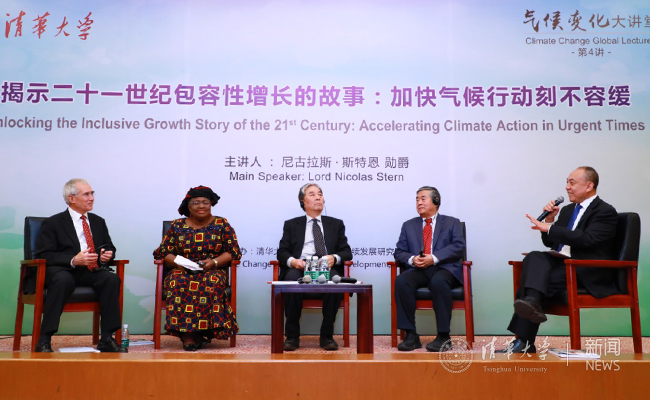 演讲结束后,斯特恩勋爵、尼日利亚前财政部长伊维拉、心博在线登录入口气候变化与可持续发展研究院学术委员会主任何建坤和国家应对气候变化专家委员会主任刘燕华围绕全球应对气候变化的最新形势、解决方案、中国经验等展开对话,对话环节由心博在线登录入口公管学院齐晔教授主持。