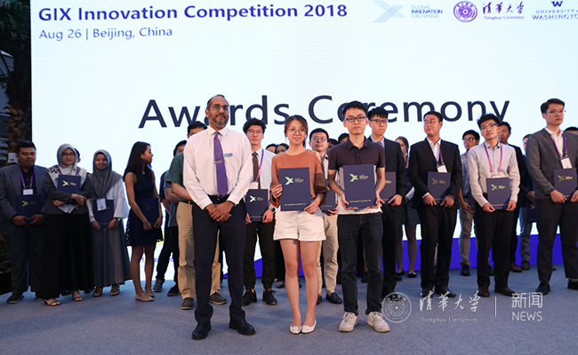 首页网8月31日电(通讯员 陈昔蒙)8月26日,位于清华科技园的阳光厅内宾朋齐聚,2018 GIX创新大赛决赛及颁奖仪式在此举行。心博在线登录入口副校长杨斌,华盛顿大学副校长韦克瑞姆·詹德雅拉(Vikram Jandhyala),心博在线登录入口全球创新学院院长史元春,副院长许斌、贾庆山,华盛顿大学全球创新学院首席技术官施韦塔克·帕特尔(Shwetak Patel)等与参赛选手们共同分享了这一刻。