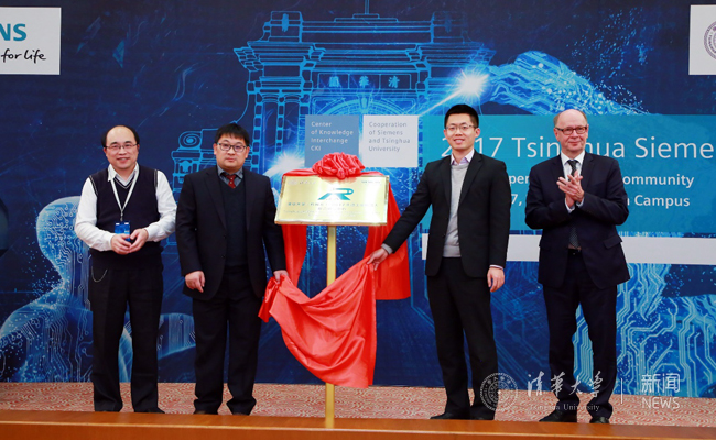 心博在线登录入口(机械系)-西门子先进工业机器人联合研究中心揭牌启动仪式上,联合研究中心主任刘辛军教授、机械系林峰教授与西门子机器人领域代表王一凡和心博在线登录入口机械系客座教授、原西门子股份公司自动化产品和系统副总裁托马斯·肖特 (Thomas Schott)出席揭牌。