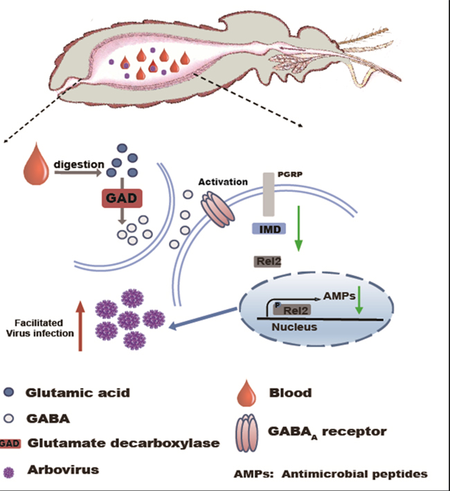 图3. gama-氨基丁酸能的系统辅助蚊媒病毒在蚊虫体内感染。