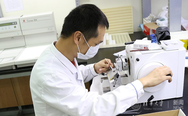 走进清华长庚医院的病理科,在这个几百平方米的套间里,井井有条地装满了仪器设备和显微镜。没有窗户,明亮的照明灯下一张张工作台;有赖于先进的通风系统,福尔马林的味道很淡。每位病理医师或技师都在各自的岗位上,默默地进行着操作。一张切片最终形成,置于显微镜下,“有时候一组标本,一看就是几十分钟,碰到有问题的还要看了再看。”为了保证病理诊断的准确性,“凡是判定恶性活检的,必须双签。”