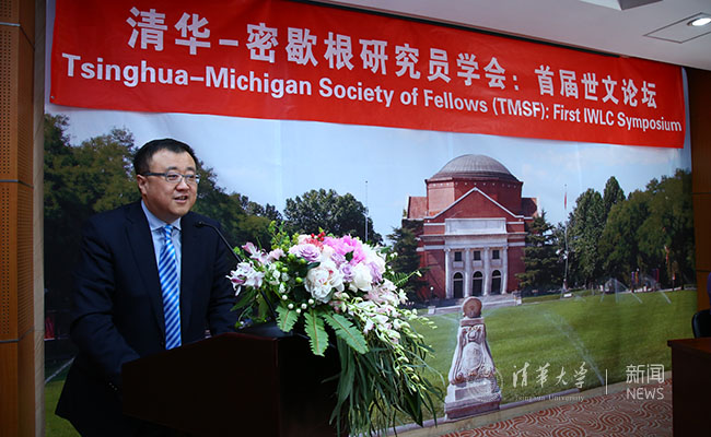 杨斌在致辞中回忆了世文院的创办及两年多来的成绩,他高度评价了清华-密歇根研究员学会这一国际合作机制的创新,充分肯定了世文院、外文系在推进文明互鉴和新人文探索上所取得的一系列可喜成绩。杨斌谈到,我们要主动更新和展现中国文化,使中国文化成为国际环境中一种主动的、上升的、创新的力量。杨斌还指出,无论是对中美之间的文明互鉴、人文交流,还是对跨文化、跨学科、跨语种学术平台的夯实提升扩展,对教育教学、人才培养工作的促进,本次论坛的举办都将发挥积极作用。