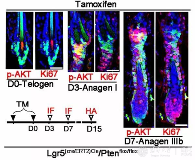 首页网4月25日电 日前,清华-伯克利深圳学院(TBSI)精准医疗与健康研究中心、心博在线登录入口深圳研究生院生命与健康学部吴耀炯教授在《自然·通讯》(Nature Communications)发表题为“巨噬细胞通过AKT/β-catenin信号通路激活毛囊干细胞促进再生”(Macrophages induce AKT/β-catenin-dependent Lgr5+ stem cell activation and hair follicle regeneration through TNF)的研究论文。该论文通过分子生物学、基因工程学和生物信息学方法,揭示了巨噬细胞-TNF诱导的Lgr5+毛囊干细胞Akt /β-catenin(β链蛋白)信号在皮肤损伤后毛囊再生中的关键作用。