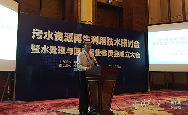 水处理与回用专业委员会主任胡洪营发言。杨春丽 摄