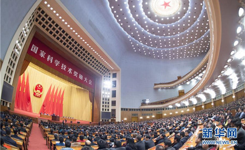 首页网1月8日电 (通讯员 孟宪飞) 1月8日上午,中共中央、国务院在北京隆重举行国家科学技术奖励大会。党和国家领导人习近平、李克强、刘云山、张高丽出席大会并向获得国家自然科学奖、国家技术发明奖、国家科学技术进步奖和中华人民共和国国际科学技术合作奖的代表颁奖。李克强在大会上发表讲话。