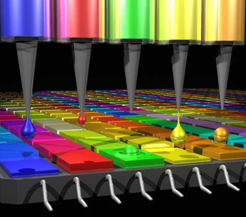 胶体量子点被打印到摄像传感器表面示意图。