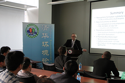 首页网12月1日电(通讯员 刘晓霏)11月28日下午,芬兰科学院院士、国际著名大气科学家马克库•库马拉(Markku Kulmala)教授应邀作客清华环境论坛,在环境节能楼做了题为《大气气溶胶:从分子簇到空气质量和全球气候》(Atmospheric Aerosols: from Molecular Clusters to Air Quality and Global Climate)的学术报告。