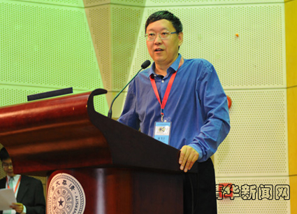 图为石墨烯的发现者、2010年诺贝尔物理学奖获得者Andre Geim教授代表特邀演讲嘉宾发言。杨 昊 摄
