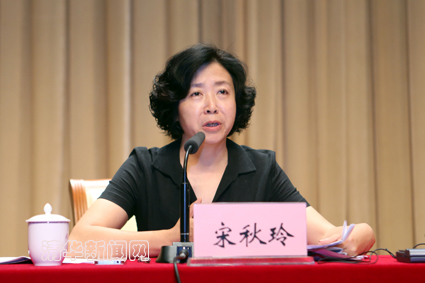 图为宋秋玲应邀作专题报告。记者 智斐 摄