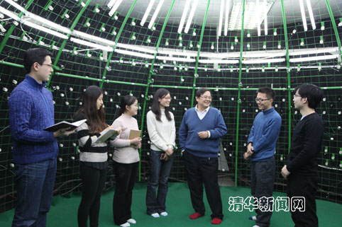 图为戴琼海与同学们一起研讨研究中遇到的问题。