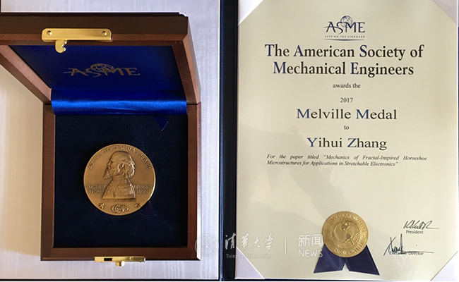 张一慧副教授荣获的美国机械工程师协会梅尔维尔奖章和证书。