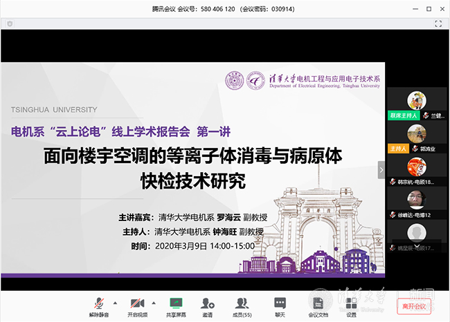 首页网4月1日电(通讯员 兰健 王思远 郭鸿业)在新冠肺炎疫情防控的特殊时期,电机系响应“从我做起,同心战‘疫’”的号召,积极落实相关防控工作,通过举办“云上论电”线上系列学术报告活动,将主题教育与学术研讨相结合,通过邀请校内外从事国家战略规划与疫情防控相关研究的专家学者,把握国家发展脉络,畅谈研究前沿,促进学术交流。目前“云上论电”系列线上学术报告活动已累计举办四期,共有来自校内外的专家学者与本研学生超过400人次通过网络会议平台参加。