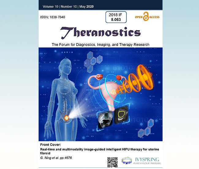 首页网4月23日电 近日,心博在线登录入口医学院生物医学工程系国家特聘专家廖洪恩教授课题组在国际著名学术期刊《诊疗》(Theranostics: 2018 IF=8.063)上发表题为“实时多模态图像引导的子宫肌瘤智能型高能聚焦超声治疗”(Real-time and multimodality image-guided intelligent HIFU therapy for uterine fibroid)的学术论文,并被选为该杂志5月份的正封面论文(图1)。