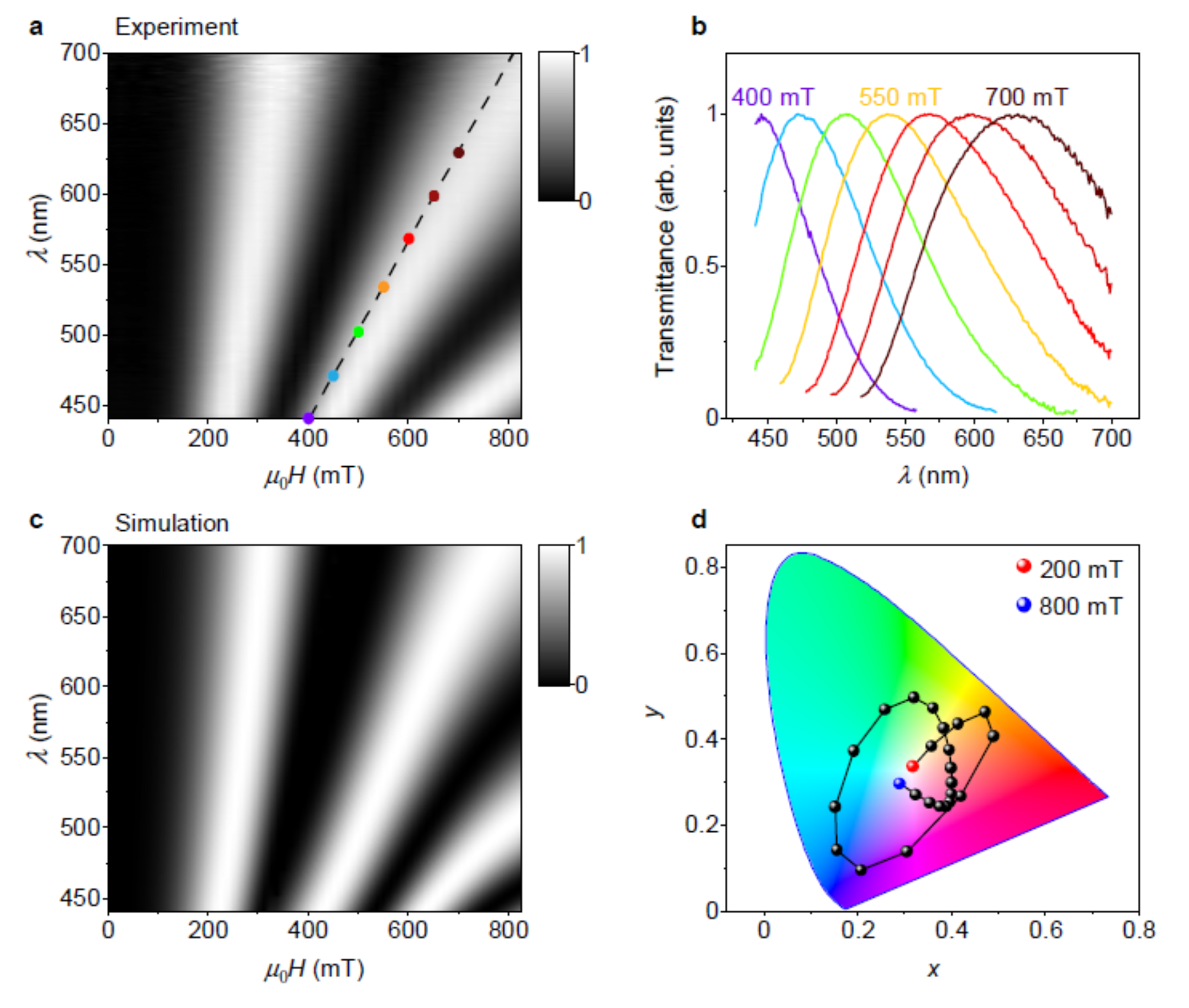 图1 基于宽带隙磁性二维材料分散液的磁致透射干涉色效应
