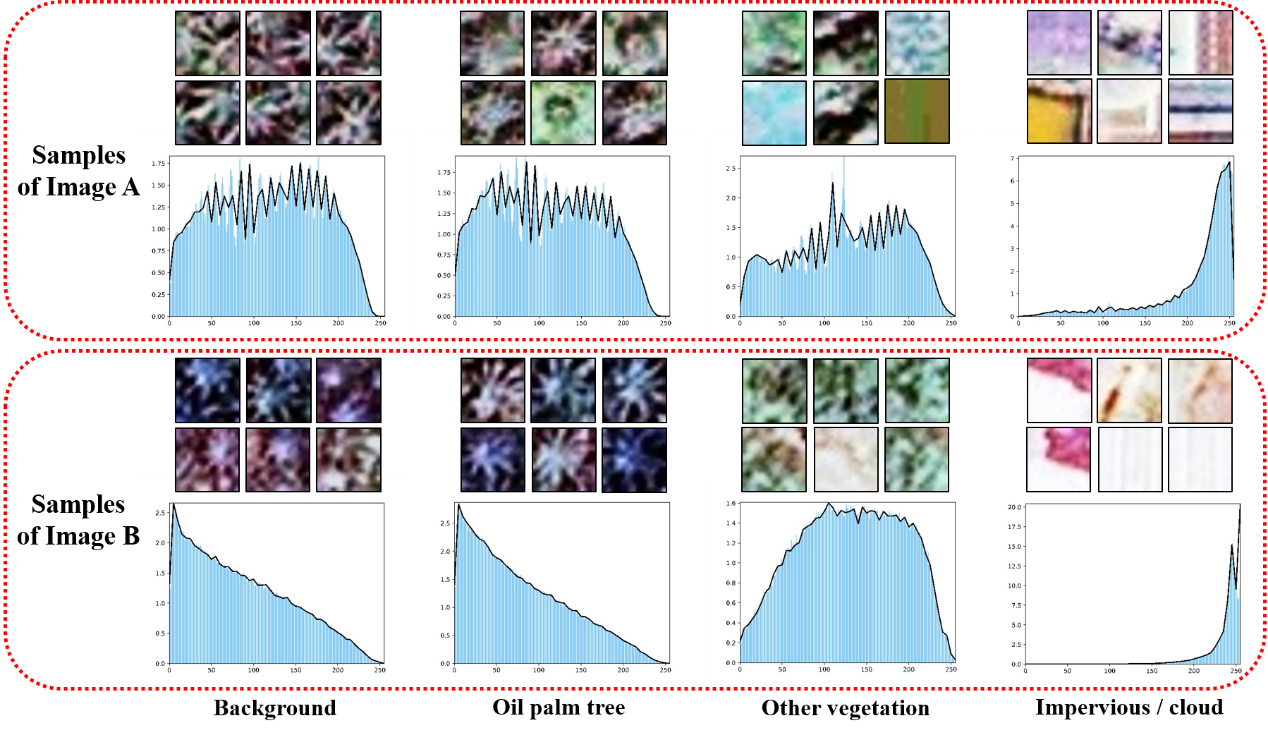首页网9月23日电 油棕作为一种重要的热带产油作物,具有很高的经济效益和生态研究价值。对油棕的准确识别有利于更好地油棕种植园管理,从而促进棕榈油产量的提高。基于遥感影像和深度学习模型,目前已有很多研究工作实现了高准确率的油棕识别。但是已有的工作主要聚焦于单一的、有限的研究区域。当使用不同传感器、不同时间、不同区域的复杂区域影像时,如果直接运用传统模型做预测,会因为遥感影像之间存在的明显差异,导致油棕检测结果精度出现大幅度的下降(如图1)。这时如果想要保持识别准确率,需要将新的影像样本加入到识别训练中,然而这将需要更多的人工标记成本。
