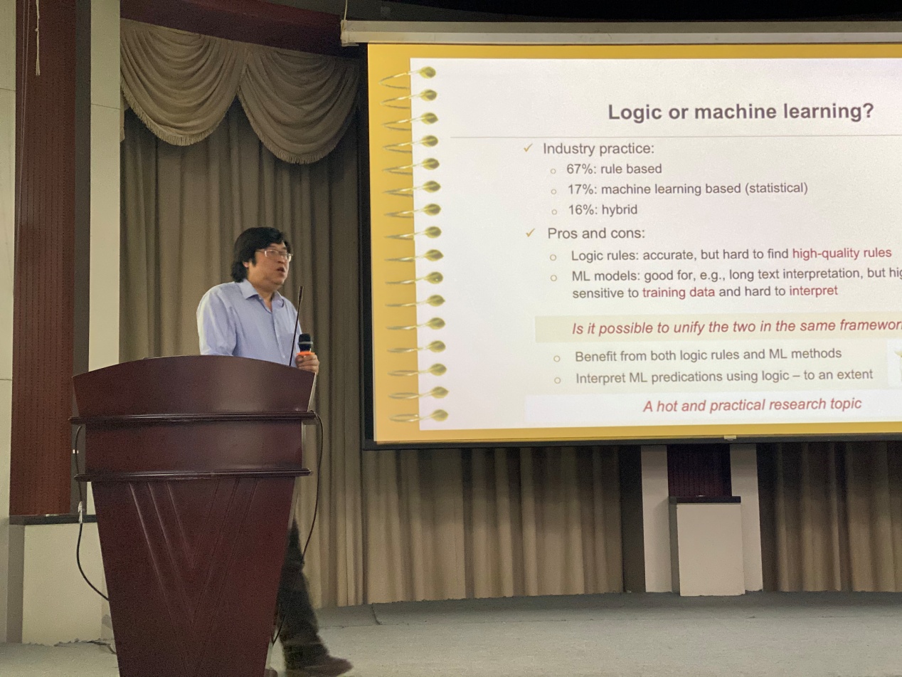 樊文飞首先抛出“并行处理是否足以应对大图数据的分析要求?”“是不是机器越多处理的速度就越快?”等问题,然后介绍了他为提升大规模图数据的并行处理效率而提出的自适应异步并发算法,以及如何基于有限的计算资源来支持对大图的查询的工作。为应对分析需求的频繁变化,樊文飞提出一套科学系统的方法来支持增量算法的研发。针对数据的多样性问题,他提出了为关系型数据和图数据提供统一的基于SQL的查询入口的方法。针对数据的质量与价值问题,他将基于逻辑规则和机器学习模型的方法整合起来,有效支持图数据的质量提升。