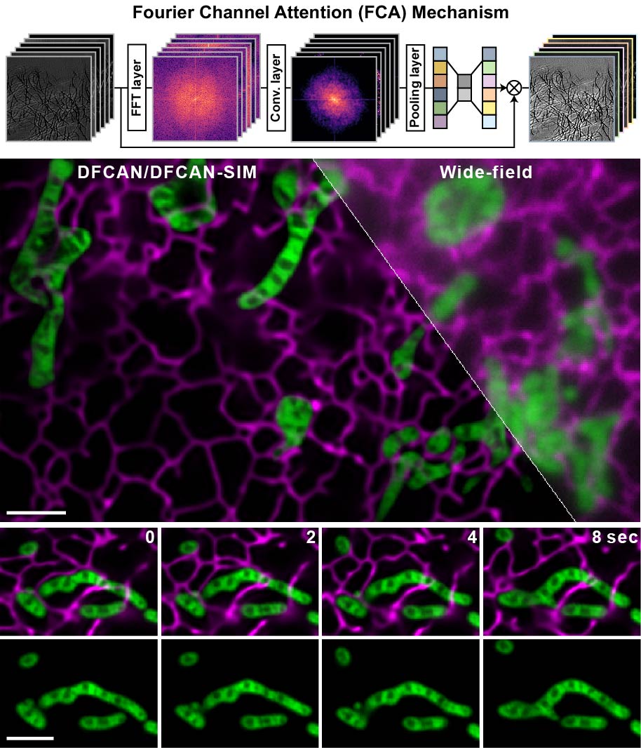 傅立叶注意力机制和基于傅立叶域注意力卷积神经网络(DFCAN)、傅立叶域注意力生成对抗网络(DFGAN)结构光超分辨重建的活细胞成像