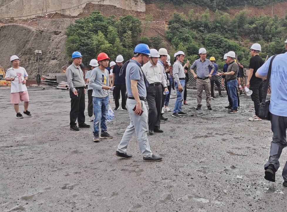 现场考察马跳堆石混凝土高坝建设情况