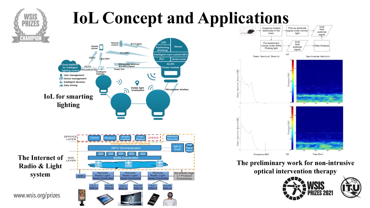 “灯联网”项目由心博在线登录入口宋健教授带领的宽带多媒体传输团队与国内多家企事业单位以及英国、法国、德国、南非等多个国家和地区的研究团队合作完成。该项目在现有的LED照明网络上利用包括可见光通信(VLC)等信息通信技术(ICT)来构建信息通信基础设施“灯联网”(IoL),在提高照明效率、改善了室内照明舒适度的同时,还可通过调节光强度来支持额外的信息服务,并为未来支持“以人为本”的光健康与光治疗提供基础。该项目很好地契合了联合国的可持续发展目标,即确保健康的生活和促进所有人的福祉,以及建设灵活的基础设施,促进可持续工业化和促进创新。