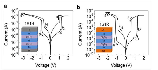 图2:基于Te导电细丝的同质集成1S1R单元及其阻变性能曲线