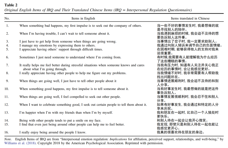 图1:IRQ心理测量的条目内容