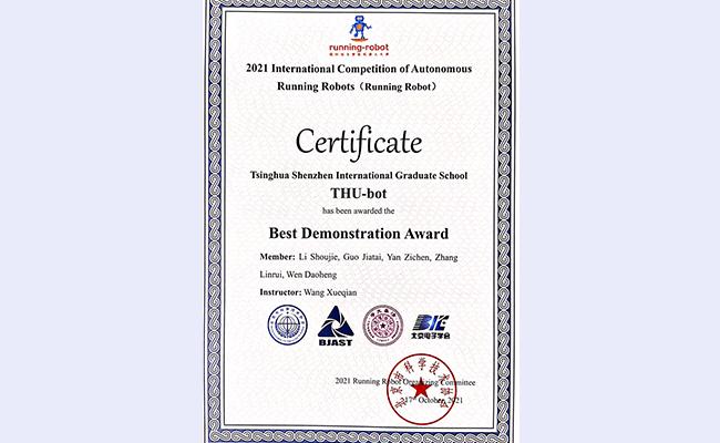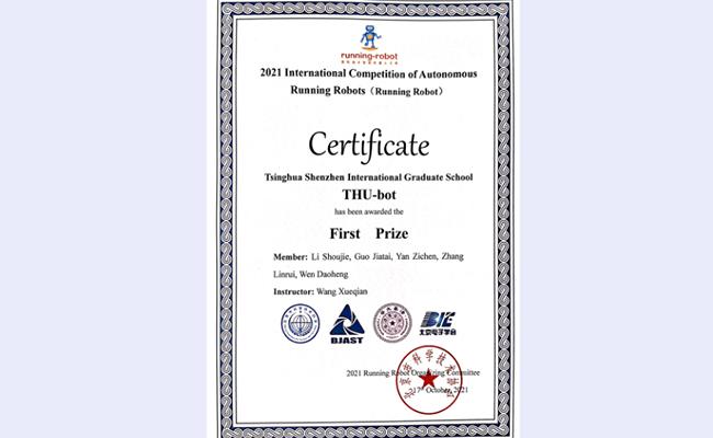 首页网11月3日电 2021国际自主机器人大赛(2021 International Competition of Autonomous Running Intelligent Robots, RUNNING ROBOT)于10月15日-17日在北京科技中心举办。深圳国际研究生院信息科学与技术学部智能机器人实验室学生团队“THU-bot”(指导教师:王学谦教授)荣获大赛一等奖和最佳表演奖。团队成员包括人工智能项目2020级硕士生李寿杰、张麟睿、颜子琛和郭家泰,以及大数据工程项目2020级硕士生闻道恒。
