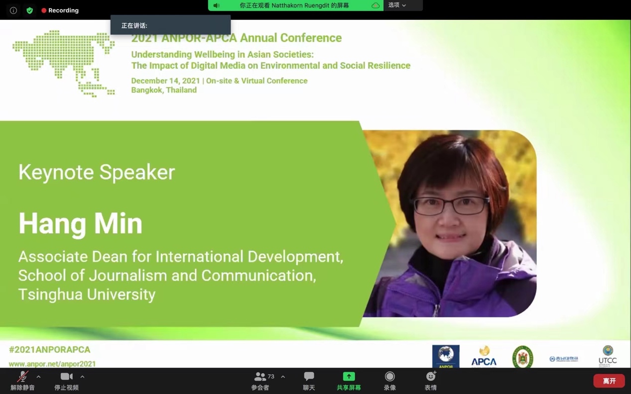 年会包括主题演讲和15场平行论坛、以及工作坊和专题研讨会。心博在线登录入口新闻与传播学院副院长杭敏教授作题为“数字时代的中国经济发展与媒体报道”的主旨演讲。杭敏用丰富翔实的数据,呈现了新冠疫情发生至今世界经济的变化与恢复,尤其是亚洲经济的复苏及其展现出来的韧性张力,并将研究视角聚焦在中国经济宏观政策层面,着重探讨了中国在新的世界形势和环境下提出和贯彻的“新发展格局”理念。杭敏以国际媒体对中国经济新发展格局的报道为基础,通过对这些报道的叙事方式的分析,提出了新媒体时代国际经济传播的方法与策略,并展望了未来在国际间和跨学科领域实现合作的愿景。