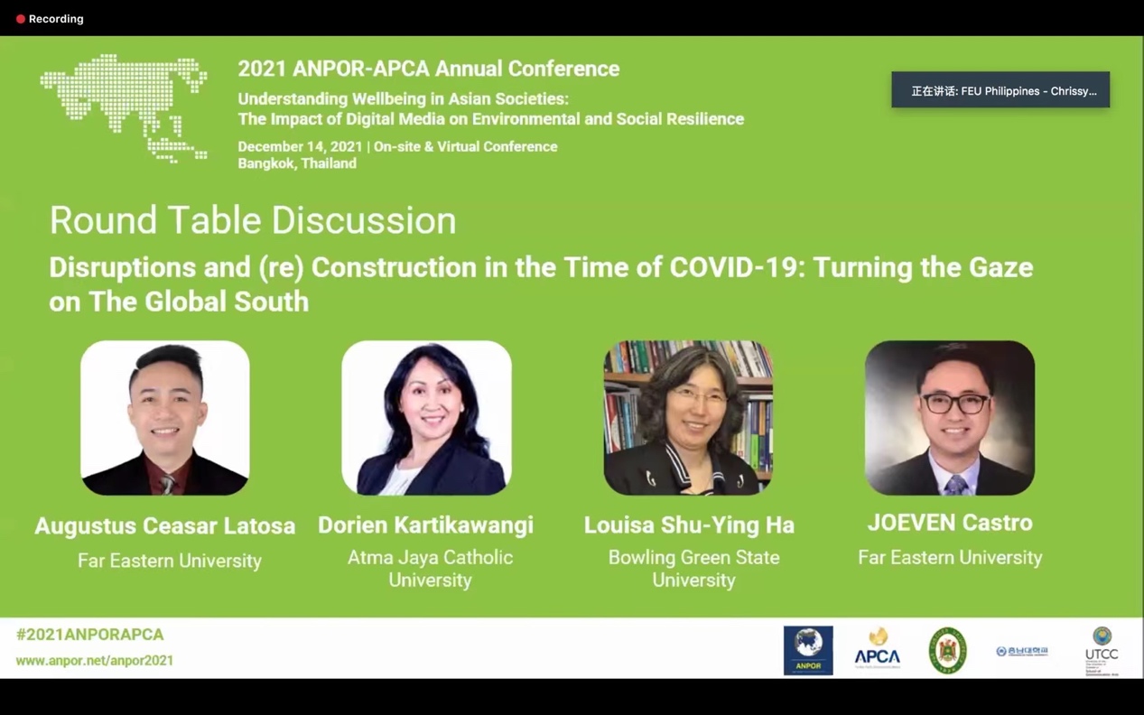 首页网12月22日电 由亚太新闻传播学会联盟(APCA)与亚洲舆论学会(ANPOR)联合举办的2021年学术年会,于12月14日在泰国曼谷以线下线上相结合的方式举行,年会的主题是“了解亚洲社会的福祉:数字媒体对环境和社会复原力的影响”(Understanding Wellbeing in Asian Societies: The Impact of Digital Media on Environmental and Social Resilience)。年会发表了来自十多个国家和地区的学者的96篇学术成果,按照数量多少依次来自中国大陆,泰国,印度尼西亚,马来西亚,韩国,中国香港、美国,日本,巴基斯坦,中国澳门,柬埔寨等国家和地区。中国大陆有42篇论文入选。