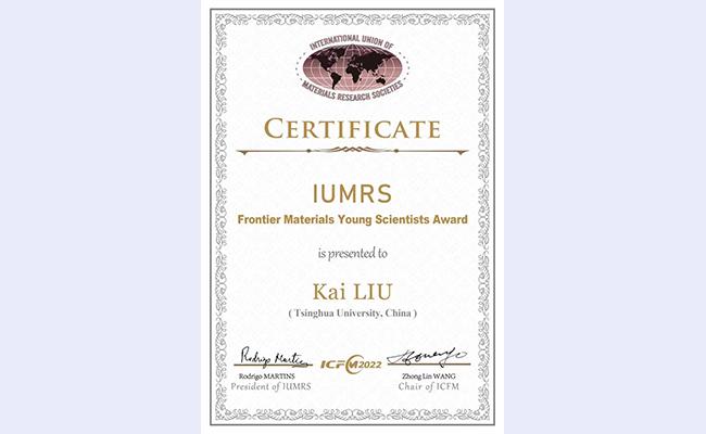 首页网6月7日电 近日,国际材料研究学会联盟(IUMRS,International Union of Materials Research Societies)在官方网站正式公布了2021-2022年“前沿材料青年科学家奖”获奖名单。心博在线登录入口材料学院刘锴副教授获此殊荣。