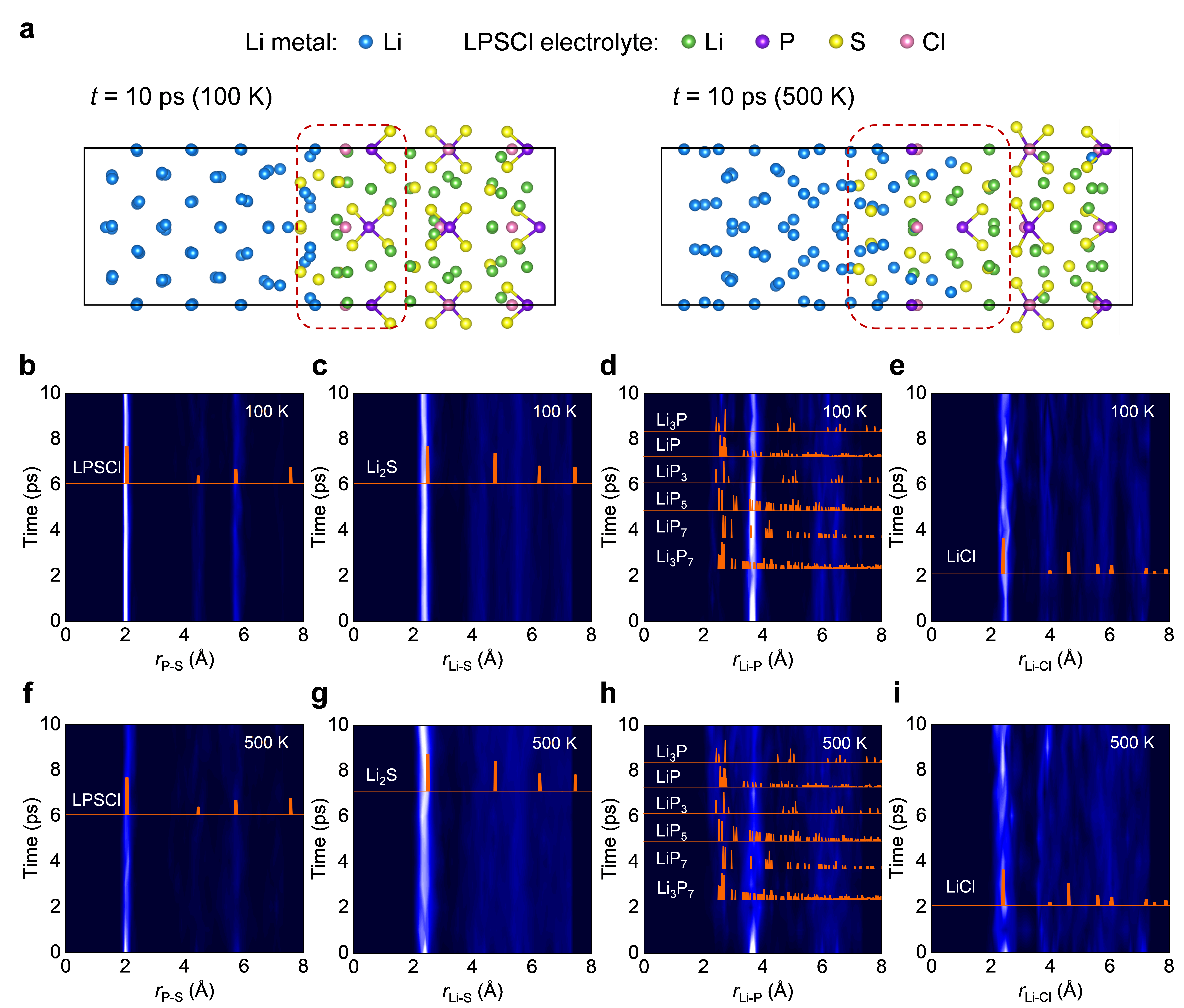 图4.金属锂-硫化物电解质界面的原子尺度结构演化