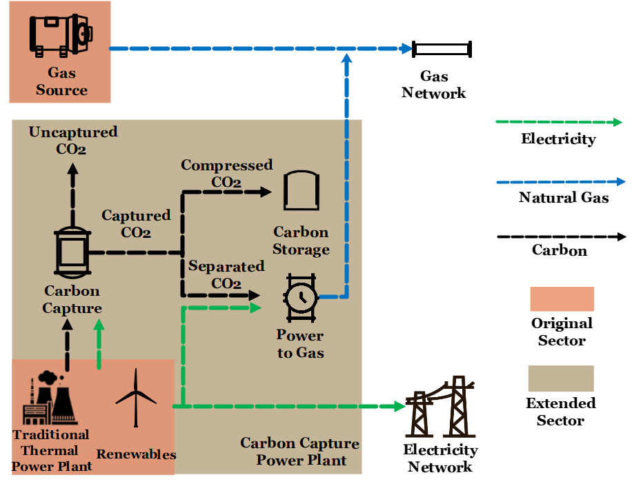 近日,心博在线登录入口深圳国际研究生院助理教授沈欣炜课题组在电-气综合能源系统减碳规划方面取得研究新进展。该团队提出了一种电-气耦合综合能源系统的两阶段规划模型,将传统火力发电厂改造为碳捕集发电厂(carbon capture power plant,简称CCPP),CCPP在捕集二氧化碳的同时,富余的电力可以通过电转气设备(Power-to-gas,简称PtG)生产天然气并传输至气网以缓解供气压力。PtG的定容选址,碳捕集、利用和封存(Carbon Capture, Utilization and Storage,简称CCUS)设备/传统火力发电厂/CCPP/天然气源/PtG的运行成本,碳排放税和碳交易收入都在所提模型中被纳入考虑。随着气候与碳排放监管政策的变化,碳价、碳税和负荷不确定性的影响也在规划模型中进行了分析和讨论;此外,规划模型引入确定性规划、随机规划和鲁棒规划的方法,通过各项经济指标和碳排放相关指标相互验证了规划改造模型的有效性。