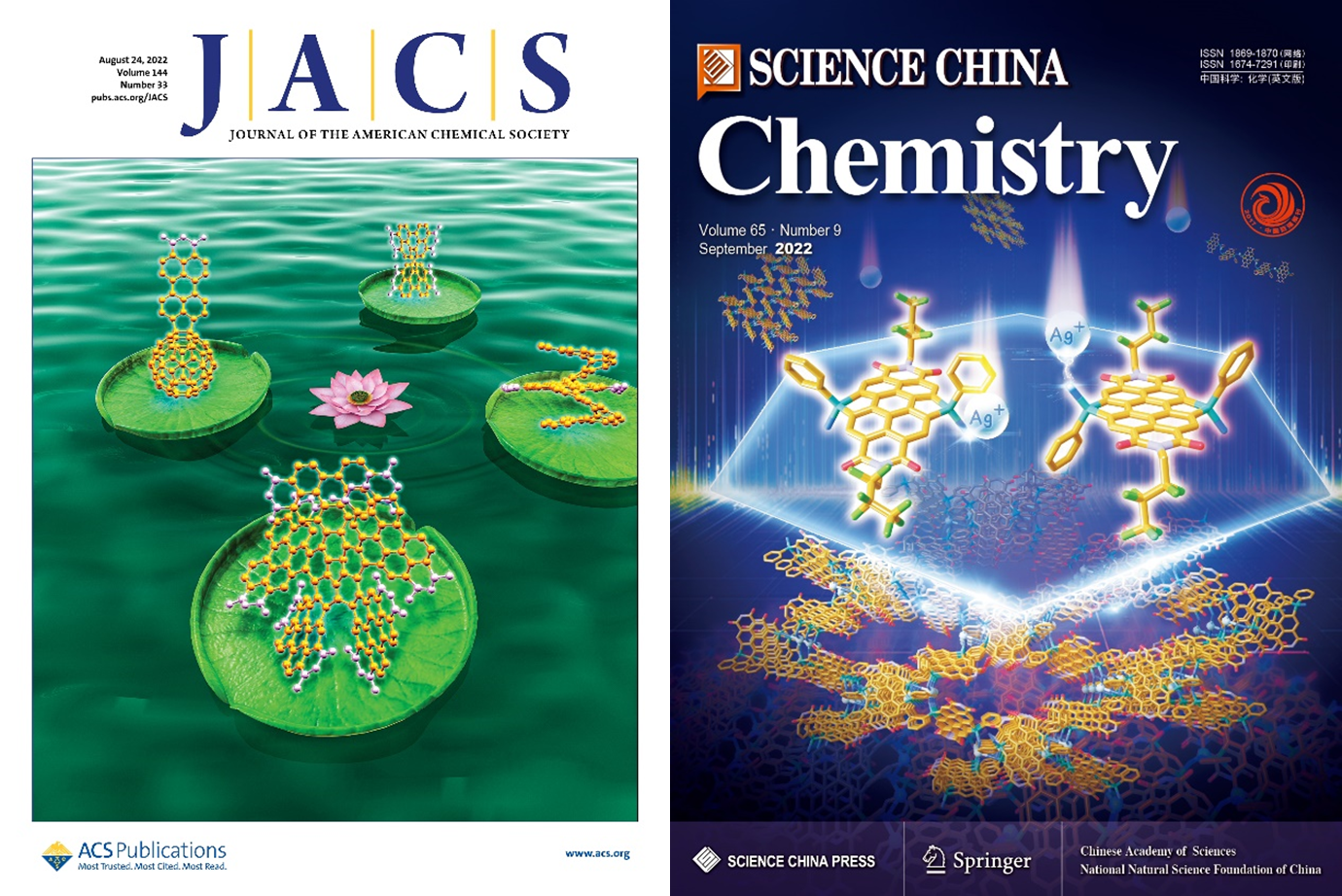 近日,该研究团队在《美国化学会会志》(Journal of the American Chemical Society)上以题为“酰亚胺功能化的分子碳”(Molecular Carbon Imides)发表了Perspective文章(图3左),不仅阐述了该分子碳体系从分子设计到功能应用的演变规律,深入揭示其分子结构-物理化学性质-功能应用之间的关系;而且还对其进一步发展提出了重要见解。论文第一作者为化学系姜玮副研究员,通讯作者为王朝晖教授。
