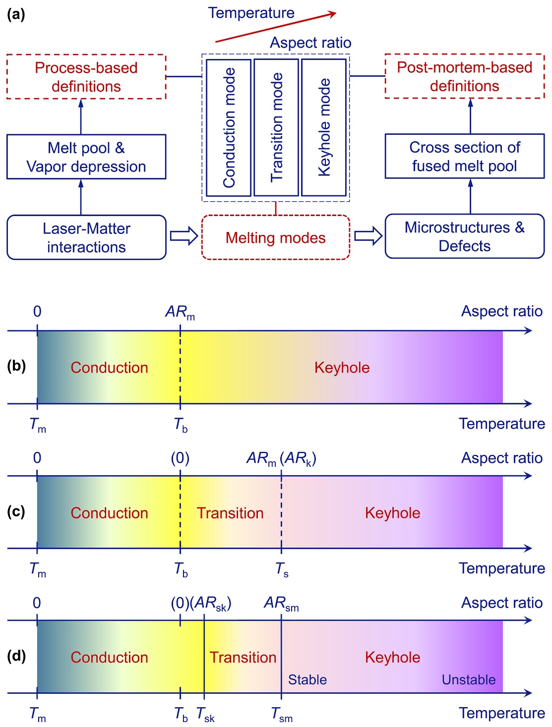 首页网10月24日电 在过去的三十多年中,金属增材制造技术(俗称金属3D打印)快速发展,对航空航天、汽车、国防、化工、医药、能源等领域产生了深刻变革。激光粉末床熔融增材制造(亦被称作激光选区熔化)是其中最广泛使用的技术之一。然而,迄今为止,学术界对激光-物质相互作用的认识还不够深刻,对激光熔化模式的定义仍然很模糊、尚未达成共识。这使得制造无缺陷、微观结构可控的构件仍有困难,限制了激光粉末床熔融增材制造行业的进一步突破。