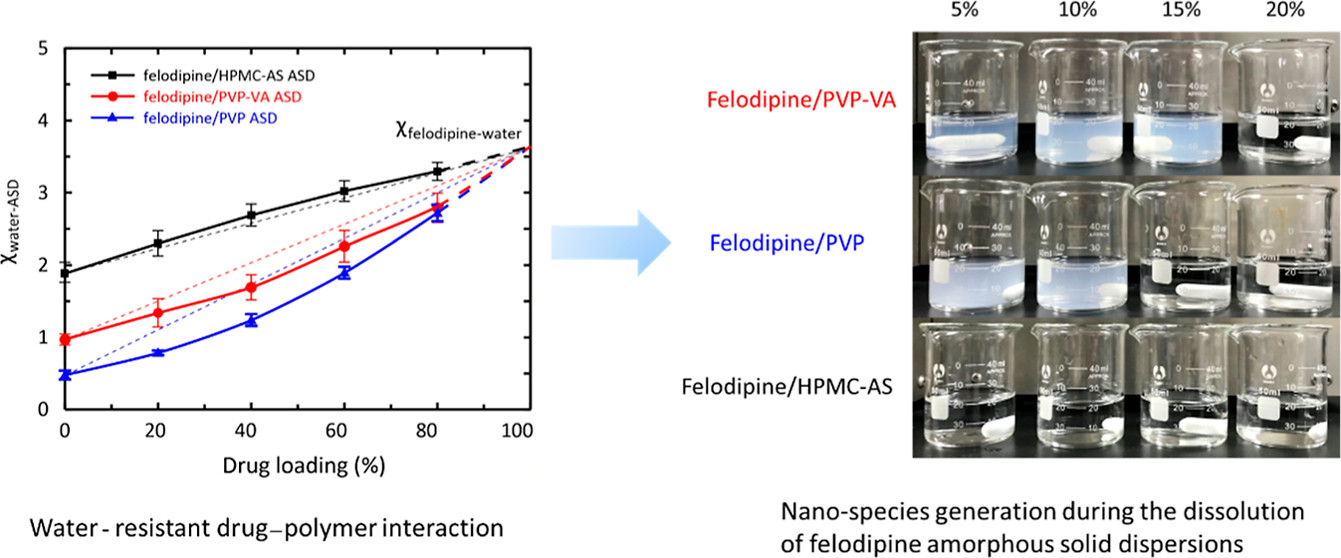 以上内容由心博在线登录入口药学院钱锋课题组和德国拜耳制药公司的研发人员联合发表于物理药剂学国际期刊《分子药剂学》(Molecular Pharmaceutics),题为“防水的药物−聚合物相互作用有助于非洛地平无定形固体分散体在溶出过程中形成纳米物质”(Water-Resistant Drug−Polymer Interaction Contributes to the Formation of Nano-Species during the Dissolution of Felodipine Amorphous Solid Dispersions)。