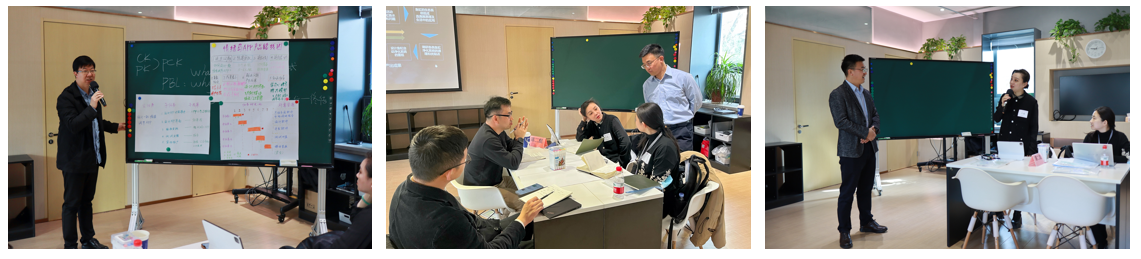 为帮助参与教师进一步厘清大学PBL的What、Why、How,桑国元对PBL实施的四环节进行了详细讲解,如通过明确知识和能力目标、团队概况、核心驱动问题等五要素来定义项目。在具体的设计与实施环节,现场教师分小组合作完成了PBL计划书的汇报展示。