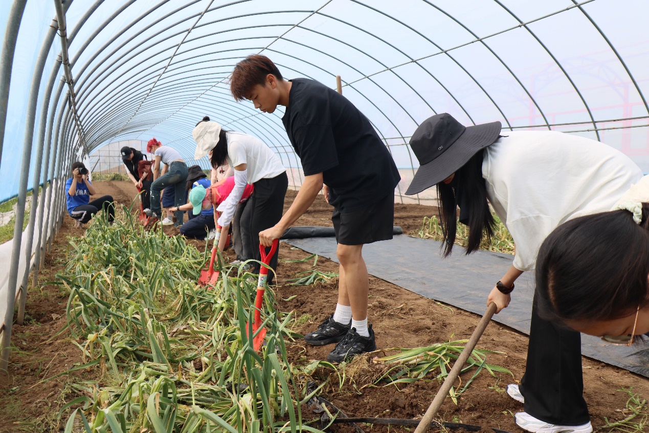 同学们在昌平区劳动教育实践基地参与起蒜劳动