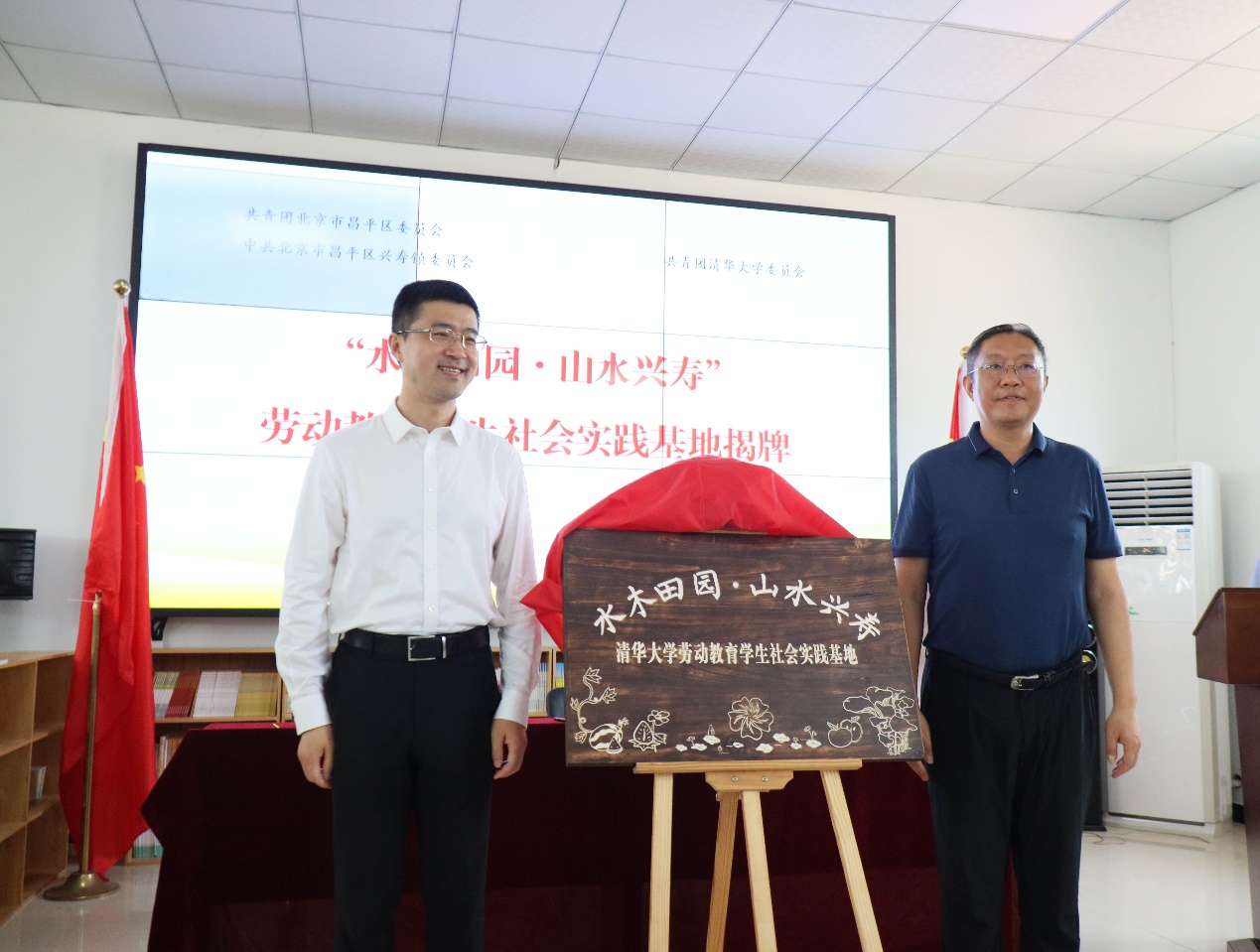 过勇和昌平区委副书记解江凌共同为“水木田园 山水兴寿”心博在线登录入口劳动教育学生社会实践基地揭牌