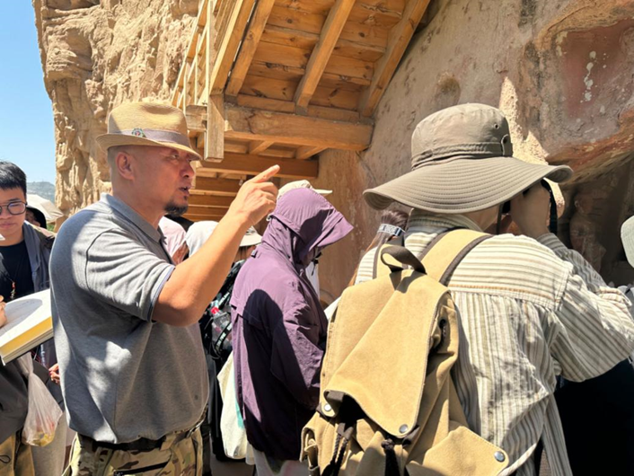 降雨量少、日照长,干燥而热烈的气候是西北石窟长寿的秘密,也是教学过程中要克服的困难。董书兵婉拒了将学生集中起来统一授课后自行参观的建议,坚持视听结合,让学生们眼见实物,耳听讲解、手绘笔记,在高温下,不厌其烦地将同样的内容重复了一遍又一遍。
